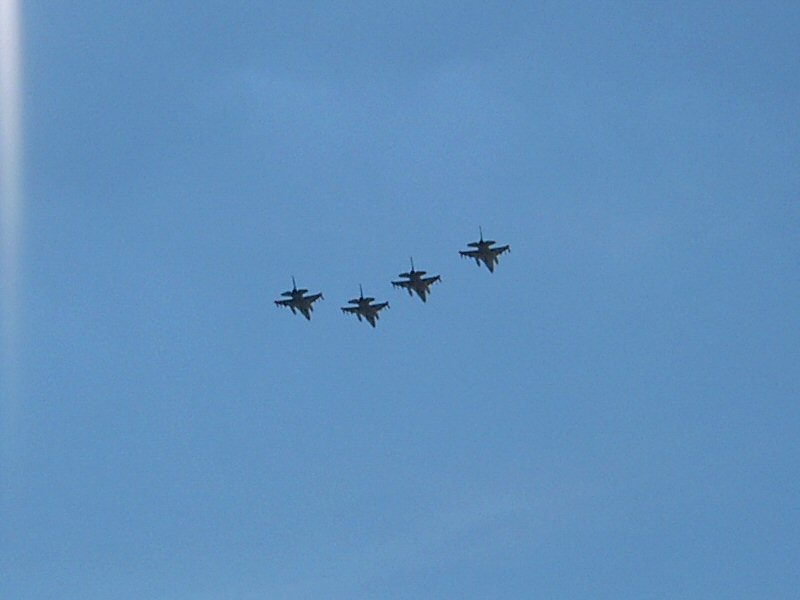そして、国歌歌い終ると同時に F16 が飛んで来る。タイミングばっちり。